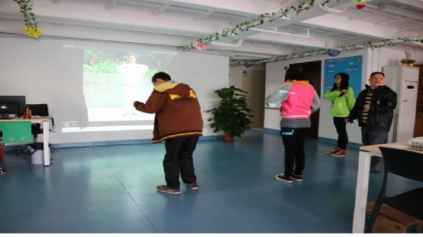 康园中心学员们正在做早操